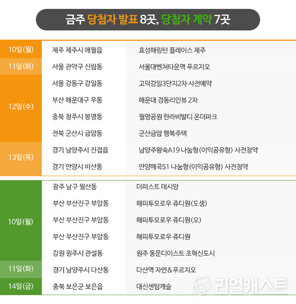 지방에선 2곳이 예정돼 있습니다. 한양은 전북 전주시 에코시티에 짓는 한양이 ‘전주 에코시티 한양수자인 디에스틴’ 모델하우스를 오픈하고, 신영은 충북 청주시 송절동에 ‘신영지웰 푸르지오 테크노폴리스 센트럴’ 주거용 오피스텔을 공급할 예정입니다. DL이앤씨는 강원 원주시 판부면에 짓는 ‘e편한세상 원주프리모원 모델하우스를 오픈 할 예정입니다.
