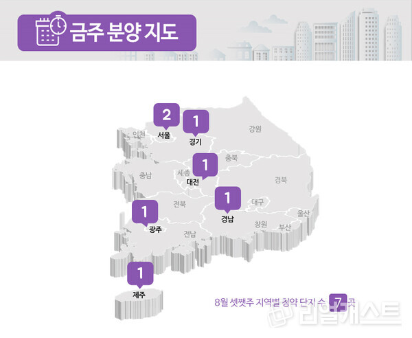 부동산인포에 따르면 8월 3주 신규 청약 및 입주자를 모집하는 곳은 7곳, 총 6619가구로 집계됐습니다(총 가구수 기준).