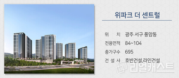 호반건설과 라인건설이 광주 서구 풍암동에 짓는 ‘위파크 더 센트럴’을 분양합니다. 중앙공원2지구 민간공원조성 특례사업을 통해 짓는 단지로 광주 중앙공원 안에 조성돼 주거환경이 쾌적합니다. 추후 광주지하철 2호선 완광대병원역과 월드컵경기장역 등도 들어설 예정입니다.