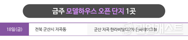 금주 모델하우스 오픈 현장은 1곳이 예정돼 있습니다.