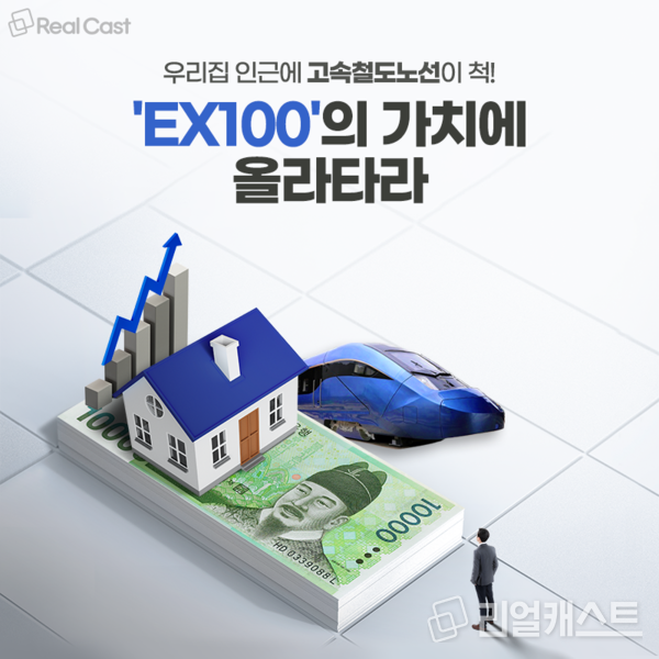 ‘EX100’은 ‘Express 100km’의 줄임말로 시간당 100km 이상의 속도로 이동할 수 있는 고속철도를 의미합니다. EX100가 운행되면서 물리적인 거리는 멀지만 실제 도달 시간이 짧아 지면서 귀한 시간을 아끼고 효율적으로 사용할 수 있게 됐습니다.