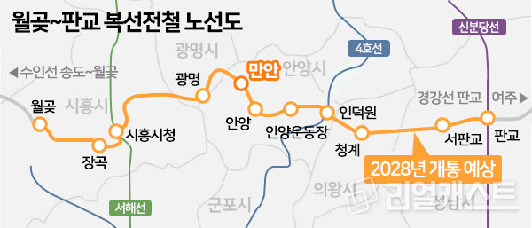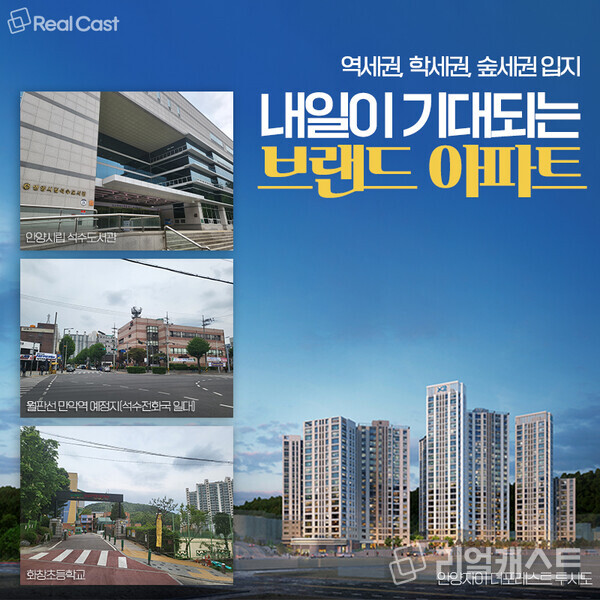월판선 수혜지역으로 꼽히는 안양 만안구에서는 GS건설이 ‘안양자이 더 포레스트’를 9월 분양 할 예정입니다. 월판선 만안역(가칭)이 도보거리에 들어설 계획이며 1호선 관악역도 도보권에 있습니다. 차로는 경수대로를 비롯해 강남순환고속도로, 서해안고속도로, 제2경인고속도로 등을 통해 서울은 물론 지방 등 타지역으로 이동이 쉽습니다.