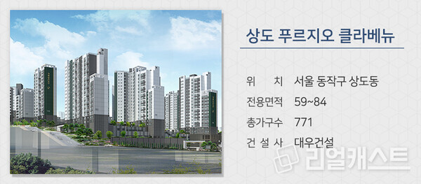 대우건설이 서울 동작구 상도동에 짓는 ‘상도 푸르지오 클라베뉴’를 분양합니다. 지하철 7호선 장승배기역을 이용할 수 있고, 상도터널, 한강대교 등으로 차량이동이 쉽습니다. 발코니확장, 붙박이장, 시스템에어컨 등 여러 옵션을 기본으로 제공합니다. 후분양 단지로 입주(2024년 3월 예정)가 빠릅니다.