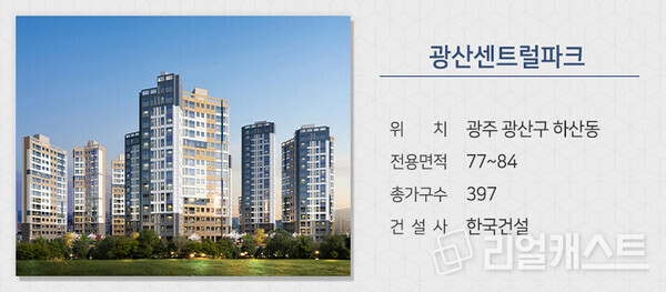 한국건설이 광주 광산구 하산동에 짓는 ‘광산센트럴파크’를 분양합니다. 광주 빛그린산단, 남구도시첨단 국가산업단지 등 주요 산업단지로 이동이 쉽습니다. 동곡로, 서광산IC 등을 통해 타 지역으로 수월하게 이동할 수 있습니다. 영산강 일대 공원, 녹지 등에서 여가 생활이 가능합니다.