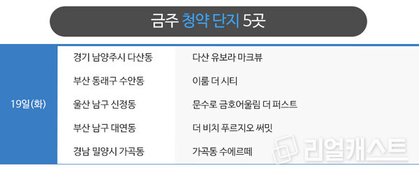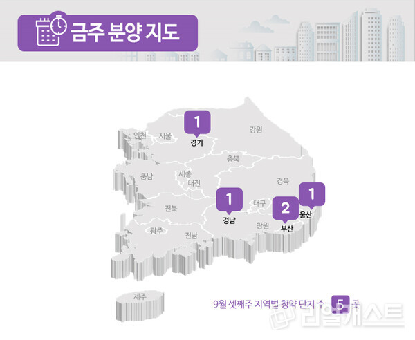 금주 분양물량은 수도권 1곳을 제외하고, 모두 부울경(부산, 울산, 경남)에 위치하고 있습니다.