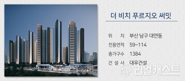 대우건설이 부산 남구 대연동에서 ‘더 비치 푸르지오 써밋’을 분양합니다. 부산지하철 2호선 남천역과 경성대부경대역을 이용할 수 있는 더블역세권 단지입니다. 경성대부경대역 일대 상권을 누릴 수 있고, 남천초·중, 대연고, 남천동 학원가 등도 갖췄습니다. 최고층 스카이라운지에서는 광안대교 및 바다 조망도 가능합니다.