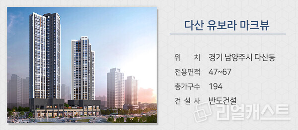 반도건설은 경기 남양주시 다산동에 짓는 ‘다산 유보라 마크뷰’를 분양합니다. 도보권에 구리역과 도농역이 있고, 미금초와 동화중·고 등도 가깝습니다. 롯데백화점, 이마트 등 대형 상업시설을 비롯해 구리역, 도농역 일대 상권 이용도 쉽습니다. 추후 별내선 8호선 연장선이 연결되면 교통여건은 더욱 좋아질 예정입니다.
