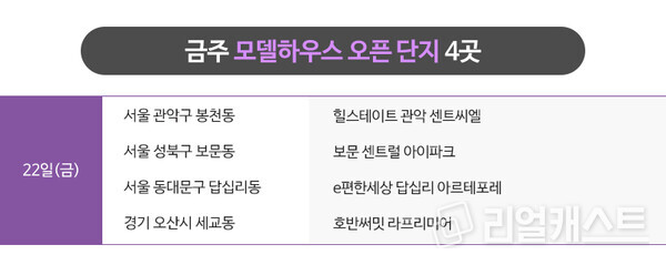 이밖에 HDC현대산업개발이 서울 성북구 보문동에 짓는 ‘보문 센트럴 아이파크’와 호반건설이 경기 오산시 세교2지구에 짓는 ‘호반써밋 라프리미어’ 등도 오픈 예정입니다.