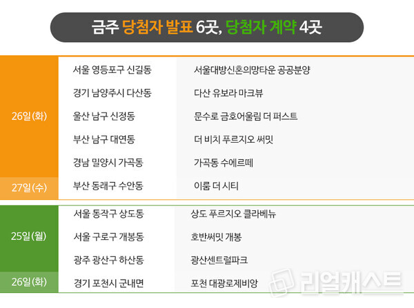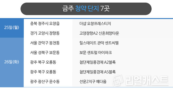 부동산인포에 따르면 9월 4주 신규 청약 및 입주자를 모집하는 곳은 7곳, 총 5194가구로 집계됐습니다(총 가구수 기준).