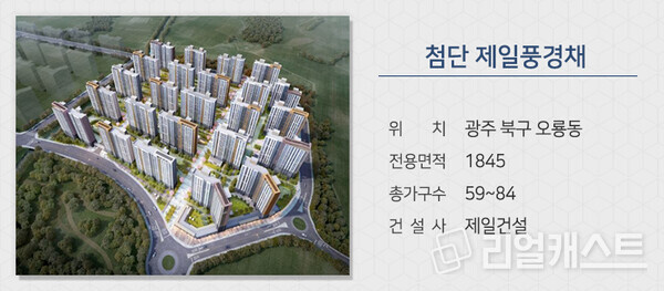 제일건설이 광주 북구 광주연구개발특구 첨단3지구에 짓는 ‘첨단 제일풍경채’를 분양합니다. 첨단3지구는 공동주택, 교육, 상업시설 등이 함께 들어서는 자족도시로, 단지 내 수영장이 조성되는 등 다양한 커뮤니티 시설을 갖추고 있습니다. 분상제가 적용되며, 주택소유 여부와 상관 없이 1순위 청약이 가능합니다.