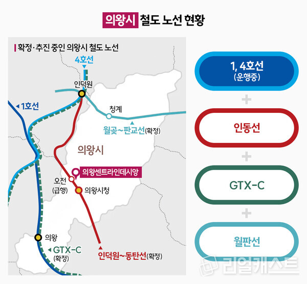 특히 경기 남부 지역에서는 안양, 의왕 등에서 기존 1호선과 4호선 외에도 인동선, GTX-C, 월판선 등이 확정되어 있습니다. 지하철 노선의 ‘연속 개통’은 이용객을 늘리고, 지역에 계속해서 부동산 가치 상승을 가져올 것으로 예상됩니다.