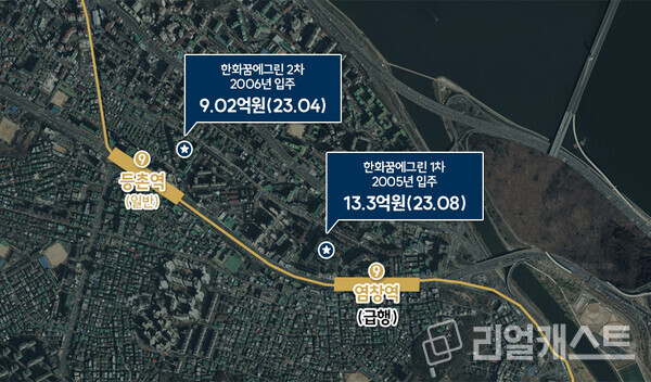 대표적인 예로 9호선 염창역(급행역)과 등촌역(일반역) 지역을 들 수 있습니다. 두 아파트는 동일한 지역에 위치하지만 가격에 큰 차이가 나타났습니다. 염창역은 급행역으로 정차하며, 2005년에 준공된 '한화 꿈에그린 1차'의 전용 84㎡ 아파트는 최근 13억3000만원에 거래됐습니다. 반면 일반역인 등촌역 일대에 2006년에 준공된 '한화꿈에그린 2차' 84㎡ 아파트는 9억200만원에 거래되어 가격 차이를 보였습니다.