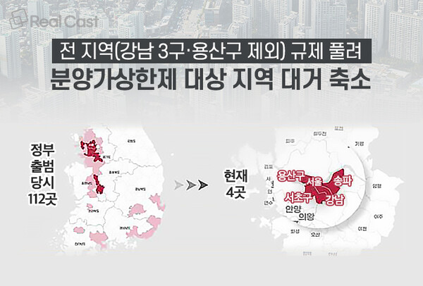 실제로 올해 1월 강남 3구·용산구 등을 제외한 전 지역이 규제지역과 민간택지 분양가상한제 적용 지역에서 해제됐습니다. 분양가를 통제할 수 있었던 분양가상한제 대상 지역이 대폭 축소된 것인데요.