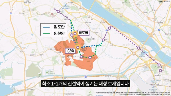 워낙 네트워크 효과가 큰 노선이다 보니 구체적인 경로에 대해서는 인천과 김포가 아직 대립각을 세우고 있는데요. 검단 생활권에는 어떻게 결론이 나든 최소 1~2개의 신설역이 생기는 대형 호재입니다.
