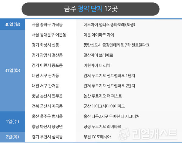 금주에는 대우건설, GS건설, HDC현대산업개발 등 대형 건설사들의 브랜드 아파트들이 대기 중인 만큼 많은 청약통장이 몰릴 것으로 기대되고 있습니다.