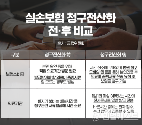 금융당국이 고령층‧취약계층 등 보험소비자의 보험 청구 절차 불편을 해소하고 소비자 권익을 제고할 수 있도록 실손보험 청구 전산화 작업에 추진합니다.