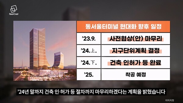 서울시는 ’25년 착공을 목표로 로드맵을 짰습니다. 신세계동서울PFV와 9월 안에 사전협상을 끝내고 내년 상반기에 지구단위계획 결정, ’24년 말까지 건축 인∙허가 등 절차까지 마무리하겠다는 계획을 밝혔습니다.