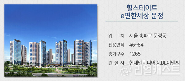 현대엔지니어링과 DL이앤씨가 서울 송파구 문정동에서 ‘힐스테이트 e편한세상 문정’을 분양합니다. 분양가 상한제 적용으로 주변보다 경쟁력 있는 가격이 장점입니다. 후분양 단지로 2024년 9월 입주 예정이며, 문정초·중학교가 가깝고 송파둘레길, 근린공원 등 주거환경이 쾌적합니다.