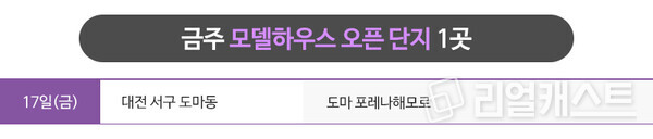 금주 모델하우스는 총 1개 현장이 오픈 예정입니다.