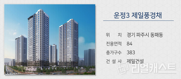 금주에는 파주운정신도시 GTX-A 운정역(예정) 인근에 위치한 단지가 지난주에 이어 연이어 분양에 나섭니다. 지난주 분양한 단지가 1순위에 높은 경쟁률을 기록했기에 관심이 더욱 쏠리고 있습니다.