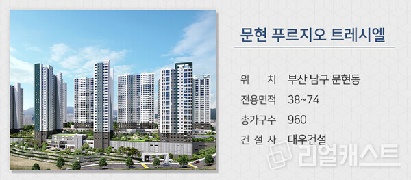 대우건설은 부산 남구 문현동에 짓는 ‘문현 푸르지오 트레시엘’을 분양합니다. 문현동 일대는 도시재생 뉴딜사업지로 개발 중이며 분양가 상한제 적용으로 주변보다 저렴한 가격에 공급됩니다. 부산도시철도 1호선 국제금융센터·부산은행역을 이용할 수 있습니다.