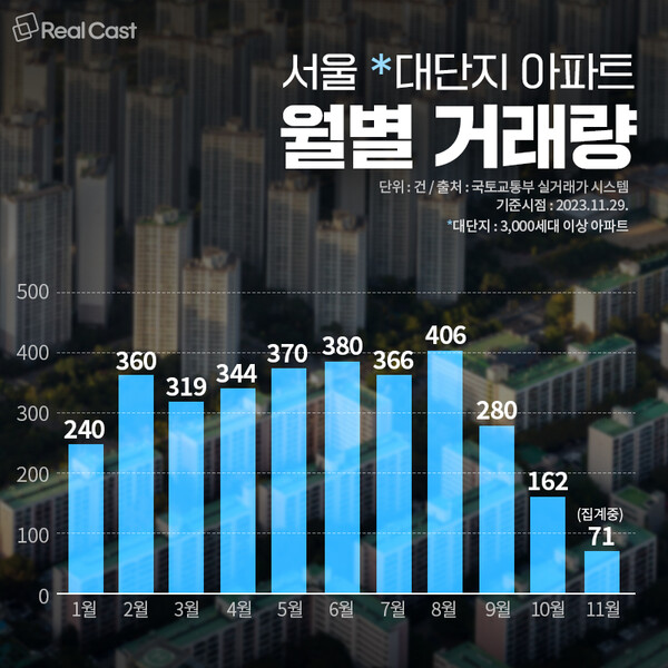 서울 3천가구 대단지, 10월 중 거래량 10건 넘은 곳 없어