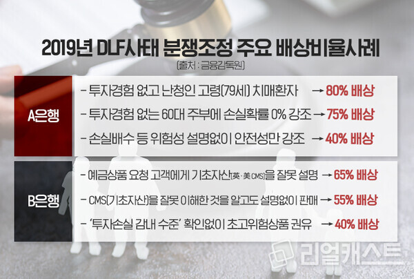 실제로 우리은행 모지점에서 판매된 DLF 상품이 100% 손실로 확정되는 일이 발생하는 등 수천억 원의 피해가 발생했습니다. 이로 인해 우리은행과 하나은행은 1000억 원대 손실배상액을 지급하긴 했지만 일부 손실은 피해자가 감수해야 했습니다.