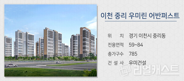 우미건설은 경기 이천시 중리동에서 ‘이천 중리 우미린 어반퍼스트’를 분양합니다. 중리지구는 시청, 세무서, 경찰서 등이 인접해 있으며 약 4,200여 세대가 들어서는 신흥 주거지입니다. 중부고속도로, 영동고속도로, 경강선 이천역 등 교통여건도 좋습니다.