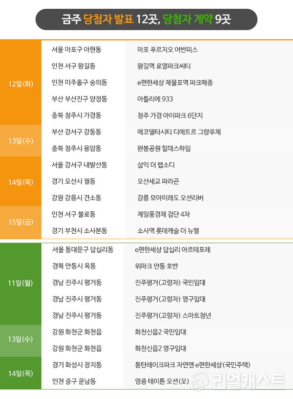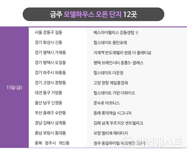 금주 모델하우스는 수도권 6곳, 지방 6곳 등 12곳이 예정돼 있습니다. 중순으로 접어들면서 연내 청약일정을 소화하려는 단지들이 몰렸는데요.
