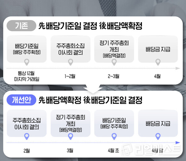 2024년부터는 투자자들이 주주총회에서 정한 배당금 규모를 확인한 후 기업의 투자 여부를 결정할 수 있게 됩니다.