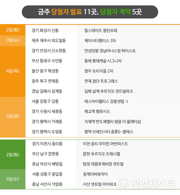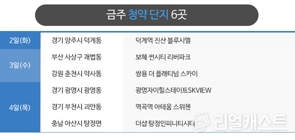 부동산인포에 따르면 1월 1주 신규 청약 및 입주자를 모집하는 곳은 6곳, 총 4703가구로 집계됐다(총 가구수 기준).