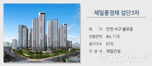 제일건설은 인천 서구 검단신도시에서 ‘제일풍경채 검단3차’를 본청약을 실시합니다. 단지 앞에 초등학교 예정부지가 있고, 인천지하철 1호선 연장 신설역이 개통되면 서울 마곡지구, 상암DMC(디지털미디어시티) 등으로 이동이 쉬워질 전망입니다.