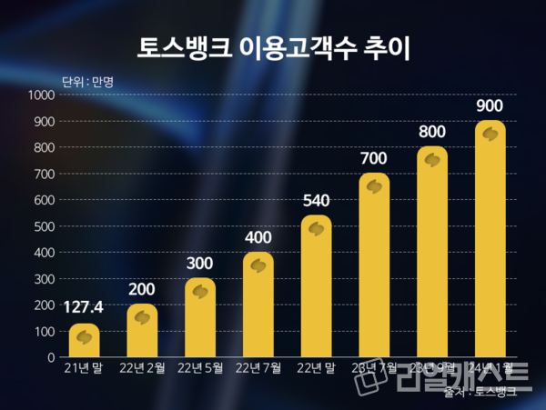 토스뱅크 관계자는 “안정적인 자본 확충, 규모의 성장 속에서 2024년 천만 은행의 궤도에 오를 전망”이라며 “토스뱅크는 고객 관점의 혁신과 금융 주권을 강화한 서비스로 고객과 함께 빠르게 성장해 나갈 계획”이라고 밝혔습니다.
