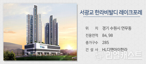 HL디앤아이한라가 경기 수원시 연무동에 짓는 ‘서광교 한라비발디 레이크포레’를 분양합니다. 경기도청, 경기도교육청, 경기남부경찰청 등 주요 행정기관을 비롯해 광교테크노밸리가 있는 광교신도시와 가깝습니다. 영동고속도로 동수원IC와 신분당선 광교역 등을 이용할 수 있습니다.