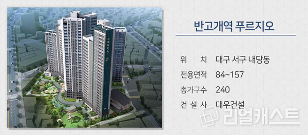 대우건설은 대구 서구 내당동에 짓는 ‘반고개역 푸르지오’를 분양합니다. 대구도시철도 2호선 반고개역 초역세권입니다. 달구벌대로와 달서로 등을 통해 차량이동이 쉽고, 반월당 일대 대형 상권과 다양한 생활인프라를 갖추고 있습니다.