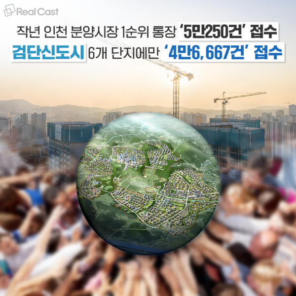 20곳 가운데 검단신도시 물량은 총 6곳이었으며 이들이 기록한 1순위 접수건은 무려 4만6,667건으로 지난해 인천 분양시장 1순위 접수 건의 92.8%를 차지했습니다.
