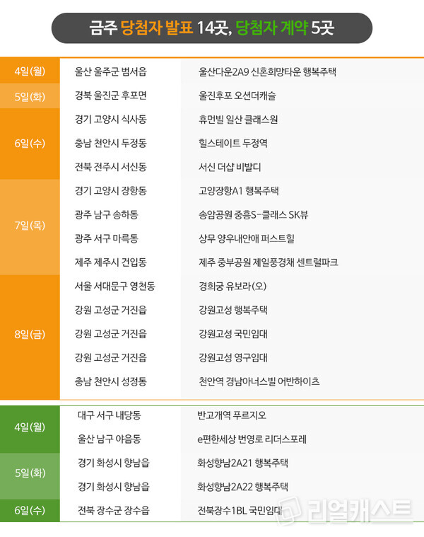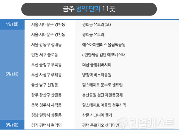 다만 2월 29일까지 입주자모집공고 승인을 받은 현장들은 종전대로 청약일정을 진행함에 따라 3월 첫째 주는 바쁘게 흘러갈 것으로 보입니다.