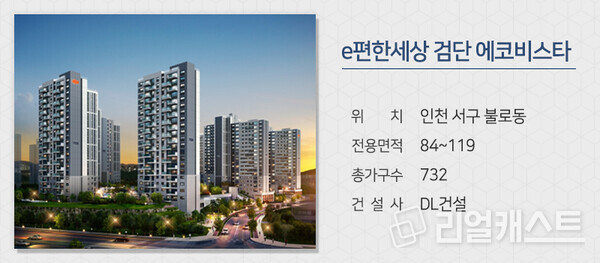 DL건설은 인천 서구 검단신도시에서 ‘e편한세상 검단 에코비스타’를 분양합니다. 인천지하철 2호선 마전역과 완정역을 이용할 수 있고, 인천지하철1호선 연장 검단호수공원역도 개통 예정입니다. 인근에 중앙호수공원(예정), 근린공원(예정), 만수산, 나진포천 등도 있습니다.