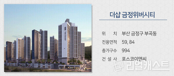 부산 금정구 부곡동에서는 포스코이앤씨가 ‘더샵 금정위버시티’를 분양합니다. 부산지하철 1호선 장전역을 이용할 수 있고, 부곡초교를 걸어서 통학할 수 있습니다. 윤산 생태숲과 등산로가 인접하고 금정구청, 금샘도서관 등의 인프라도 갖췄습니다.