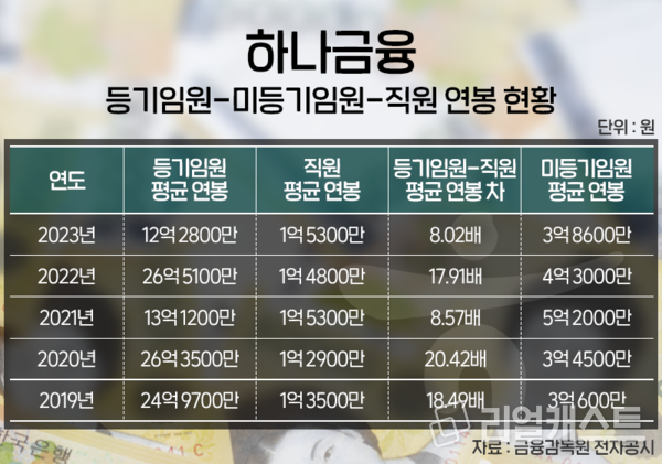 하나금융은 지난해 등기임원과 직원 평균 연봉차는 8.02배에 불과했지만 최근 5년으로 놓고 살펴보면 가장 많이 차이가 나는 것으로 확인됐습니다. 타 금융지주에 비해 연봉차가 큰 것으로 확인된 만큼 이 부분이 올해에는 개선될지 주목해봐야 할 것 같습니다.