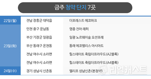 부동산인포에 따르면 4월 4주 신규 청약 및 입주자를 모집하는 곳은 7곳, 3638가구로 집계됐습니다(총 가구 기준).