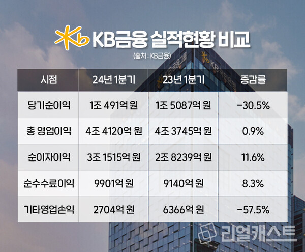 KB금융그룹(회장 양종희, 이하 KB금융)가 2024년 1분기 경영실적을 25일 발표했습니다.