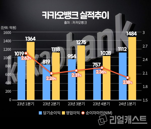 카카오뱅크는 지난 8일 2024년 1분기 실적을 발표했습니다. 올해 1분기 당기순이익은 1112억 원을 기록하며 전년 동기(1019억 원) 대비 9.1% 증가한 것으로 확인됐습니다. 영업이익은 1484억 원으로, 전년 동기(1364억 원)보다 8.8% 증가했습니다.