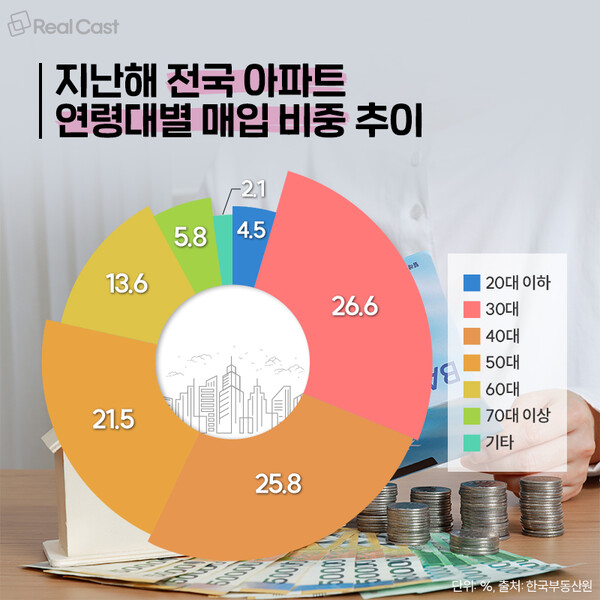 전국에서 거래된 아파트 중 30대의 매입 비중이 2019년 조사 이래 가장 높은 수치를 기록 중인데요.