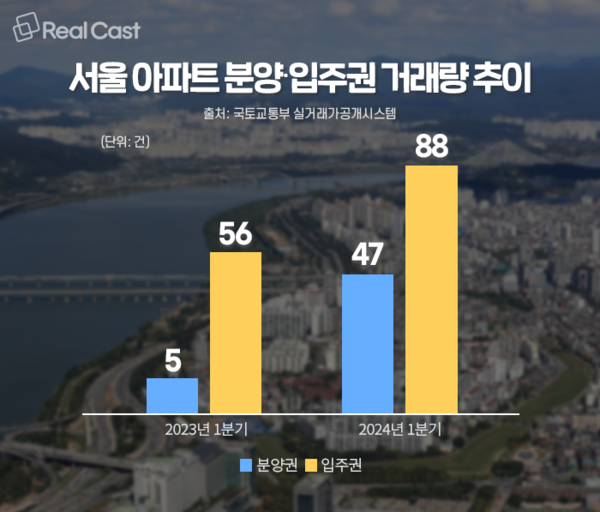 올 초 신축 아파트 분양·입주권 거래가 전년 대비 약 2배나 증가한 것으로 알려져 화제가 되고 있습니다. 5월 20일 기준으로 국토교통부 실거래가공개시스템에 따르면, 올해 1분기 서울 분양·입주권 거래량은 총 135건으로 지난해 1분기 61건과 비교해 2배 이상 증가한 것으로 나타났습니다(해제사유발생 건 제외).