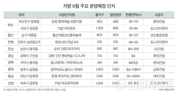 지방에서는 부산을 비롯해 전북, 경남, 경북, 충북 등 비교적 다양한 곳에서 물량이 쏟아진다.