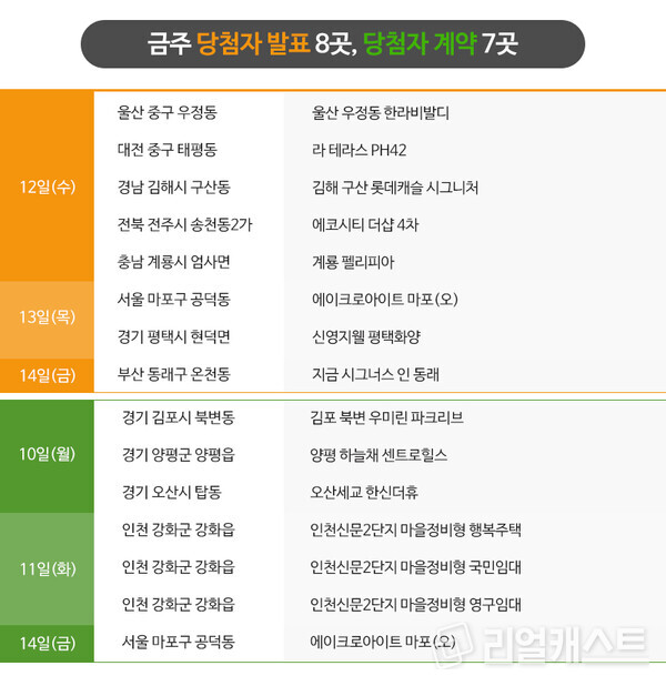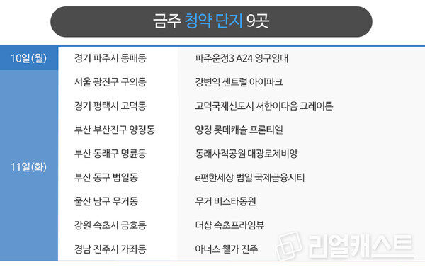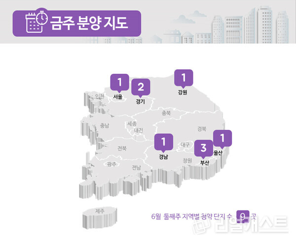 이외에 서울 광진과 경기 평택(이상 수도권), 울산 남구, 강원 속초, 경남 진주(이상 비수도권) 등에서 분양 물량이 분포하고 있습니다.