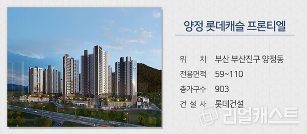 롯데건설은 부산 부산진구 양정동에서 ‘양정 롯데캐슬 프론티엘’을 분양합니다. 부산지하철 1호선 양정역 초역세권 단지로 양정초, 동의중, 세정고, 양정고, 부산진여고 등의 학교와 학원가, 도서관 등 교육 인프라가 우수합니다.