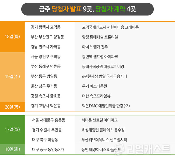 이밖에 대우건설이 인천 서구 청라국제도시 ‘푸르지오 스타셀라49(오)’, 반도건설이 경기 고양시 장항동 ‘고양 장항 카이브 유보라’, 현대엔지니어링이 충북 청주시 가경동 ‘힐스테이트 청주센트럴2차’ 모델하우스를 열고 본격적인 분양에 나섭니다.