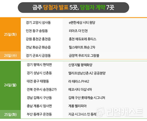 이밖에 충북 청주에서는 금호건설이 1,450가구 규모의 대단지인 ‘청주테크노폴리스 아테라’, 경북 구미에서는 현대건설이 구미 첫 힐스테이트 아파트인 ‘힐스테이트 구미더퍼스트’ 모델하우스가 주중 오픈 될 예정입니다.